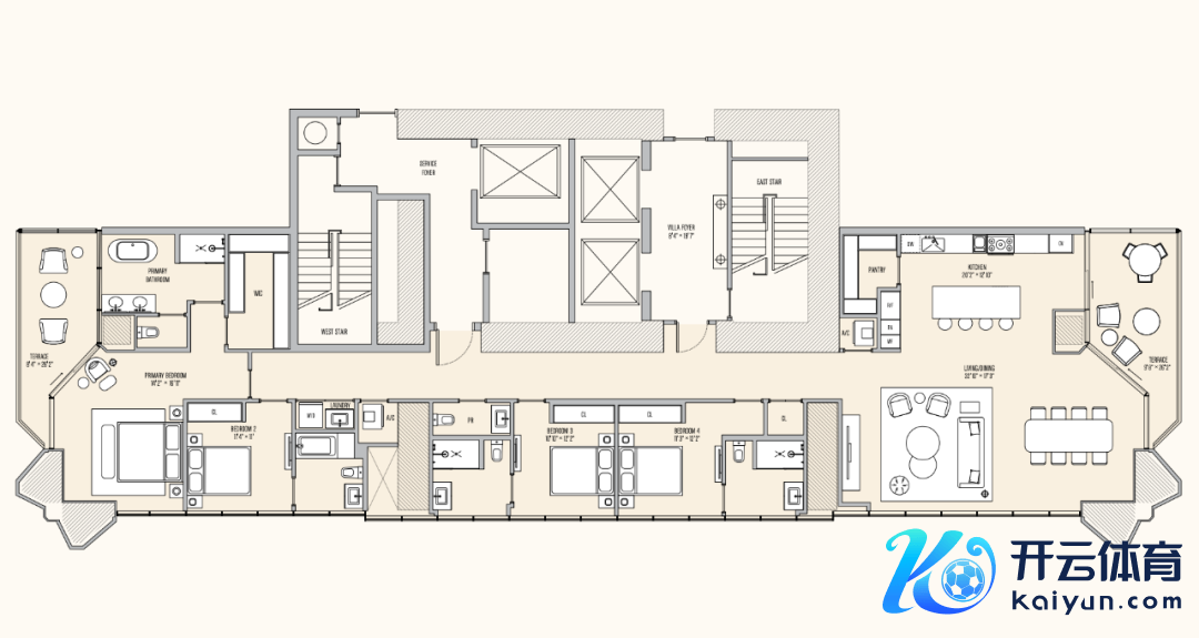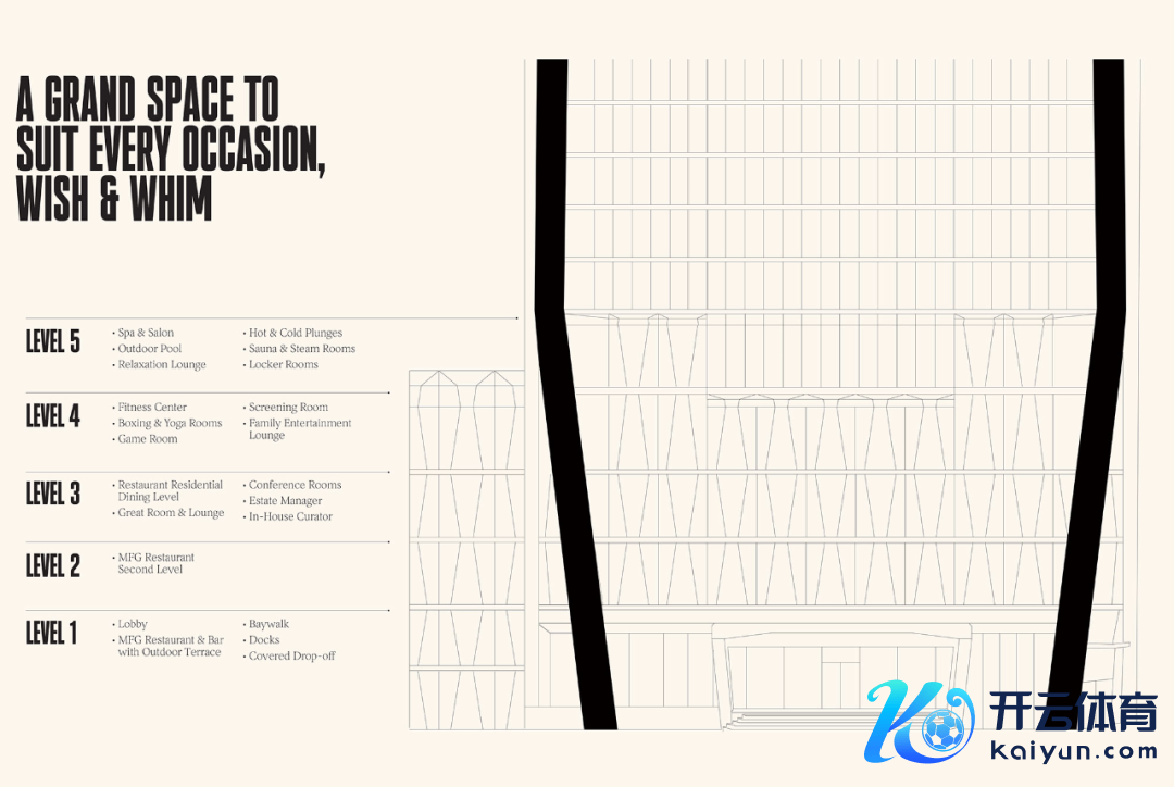 在 Villa Miami 的 2~5 层,居民不错享受到一系列悉心遐想的高端配套体式,包括由 Major Food Group (MFG) 运营的海滨餐厅(2层)、酒吧与休息区,以及泳池、水疗中心、草药蒸汽房和健身房等,这些配套不仅进步了居住体验,还展现了 Villa Miami 动作迈阿密顶级豪华住宅项见识私有魔力与高端定位。