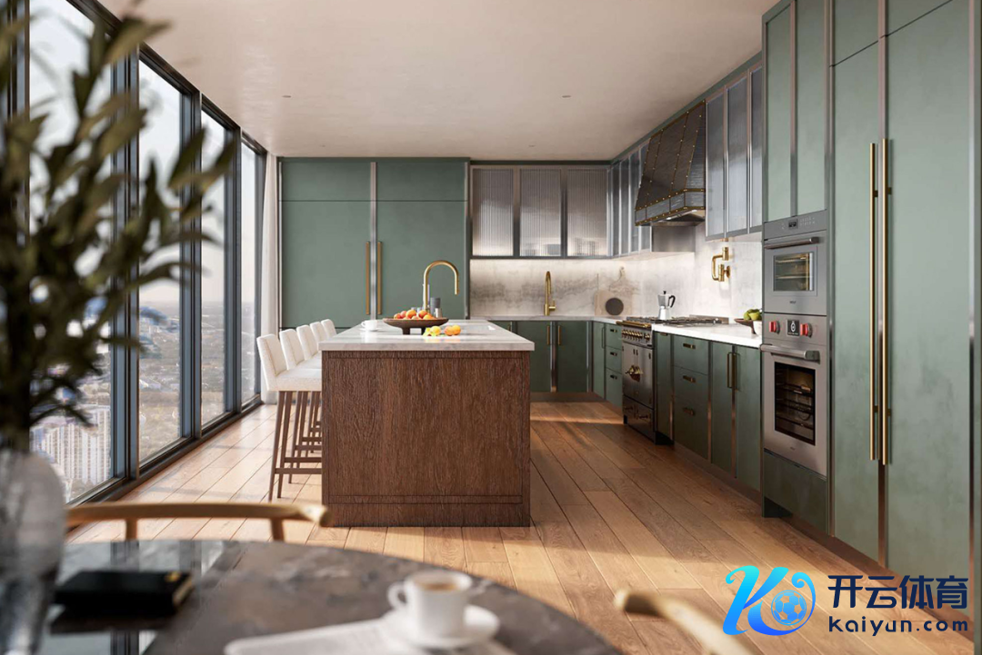 厨房中的高端厨具,如 La Cornue 双燃料灶具,Wolf 和 Sub-Zero 等品牌确立,确保了每位居民在烹调时的便利与高效。