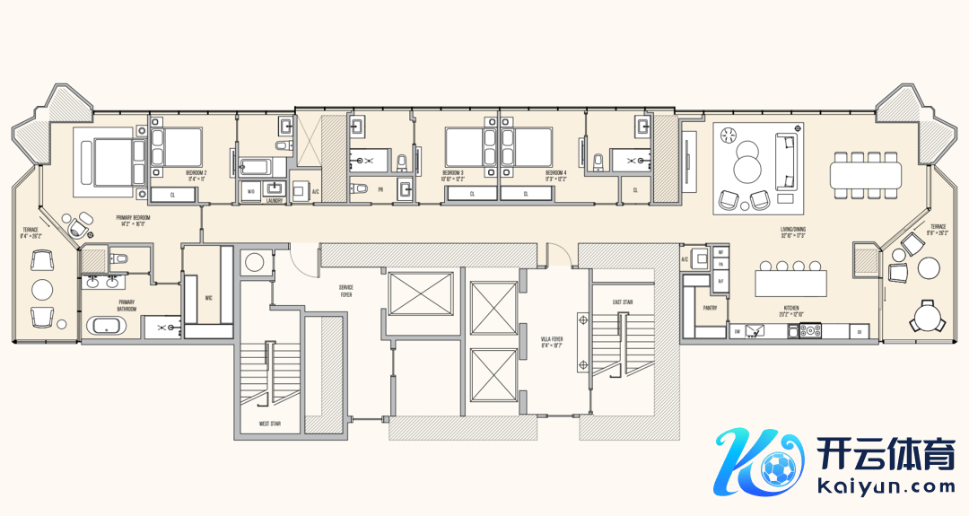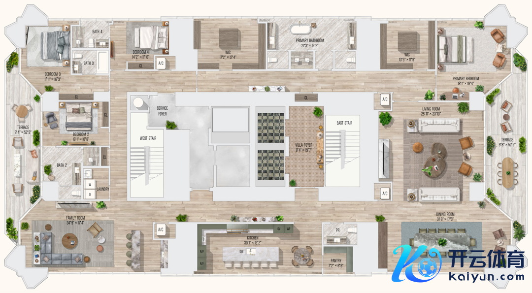 Villa Miami 是一座位于好意思国迈阿密 Edgewater 区的 56 层高楼(总高 198 米)的住宅楼,由 Terra Group、One Thousand Group 和 Major Food Group (MFG) 联手开导。该项目共有 72 套住宅,动作迈阿密最具象征性的豪华住宅项目之一,完好评释注解了大平层公寓的糜费。